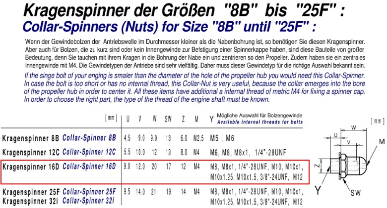 Diese Mutter wird benötigt, wenn der Motor eine Gewinde-Antriebswelle hat. Zusätzlich hat diese Mutter noch ein zentrales Innengewinde mit M4 für die Befestigung einer Spinnerkappe.